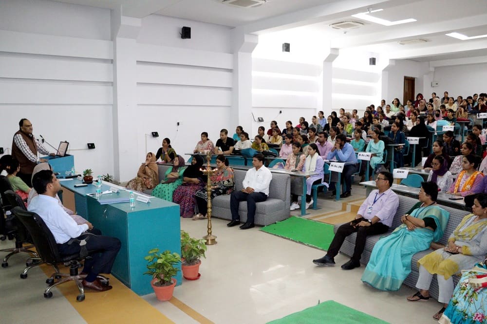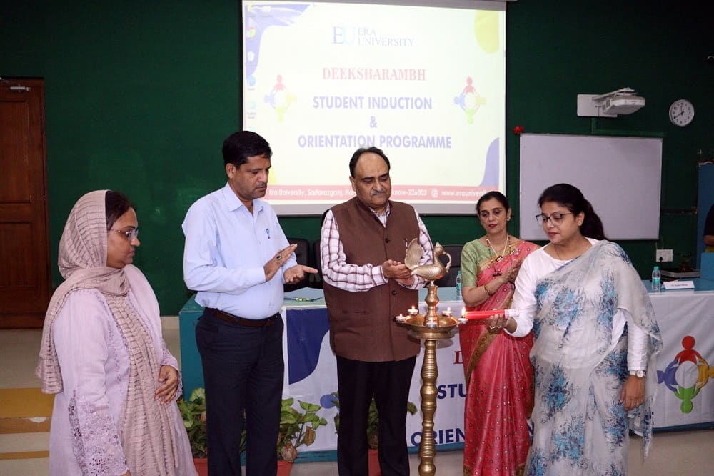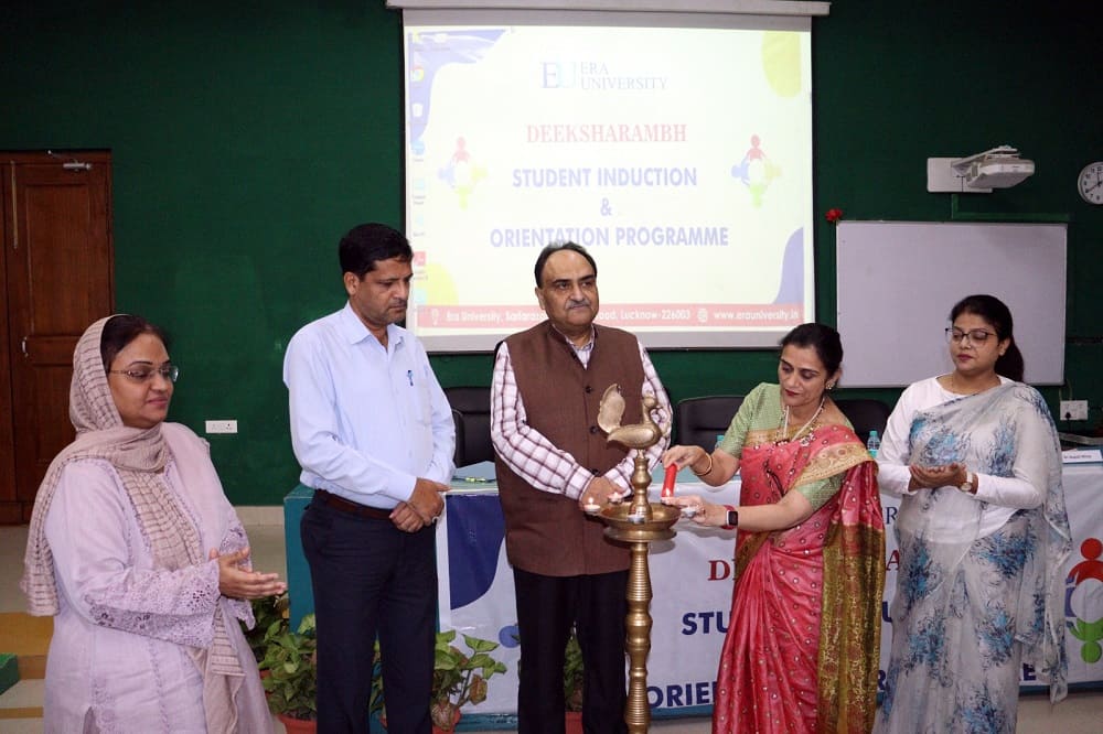 The new students of academic session 2025-26 for the Faculty of Nursing, namely B.Sc. Nursing, M.Sc. Nursing, A.N.M. and P.B.B.Sc. were welcomed through an Induction Program, “Deeksharambh 2025” on 1st August, 2025 held in the Lecture Theatre on the ground floor of the Hospital Block, Era University. The Student Induction Program (SIP) was held according to the SAGE model of UGC with emphasis on socializing, associating, governing and experiencing. The Induction will be followed by a week of Orientation and Foundation Classes.