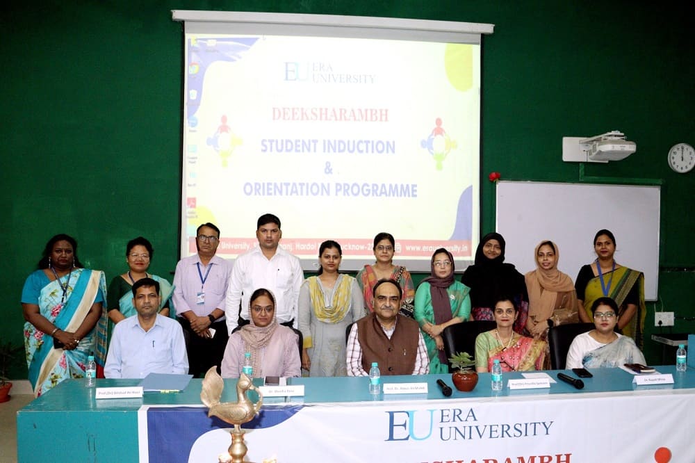 The Induction program was concluded by a vote of thanks by Dr. Rupali Mirza, Chairperson, Induction-Orientation, Era University and Head, Department of English. The event was compered by Mrs. Sonia Agnes. The Chairperson thanked all the people who were instrumental in making the program successful including her own team members, namely, Dr. Minhaj Usmani, Dr. Saleha Jafri, Dr. Shazia Fatima, Dr. Shipra Srivastava, Mr. Ajaydeep Singh, Ms. Jyoti Anurag and Ms. Laiba Rind. The Induction program was graced by other dignitaries from Nursing, namely, Prof. H.C.L. Rawat, Prof. Roseline Soren and Prof. Pinki Devi. The coordinators from Nursing, Ms. Akansha.K. Nath, Mr. Om Prakash Shukla, Mrs. Sonia Agnes Singh, and Ms. Karishma Maurya were also present on the occasion.